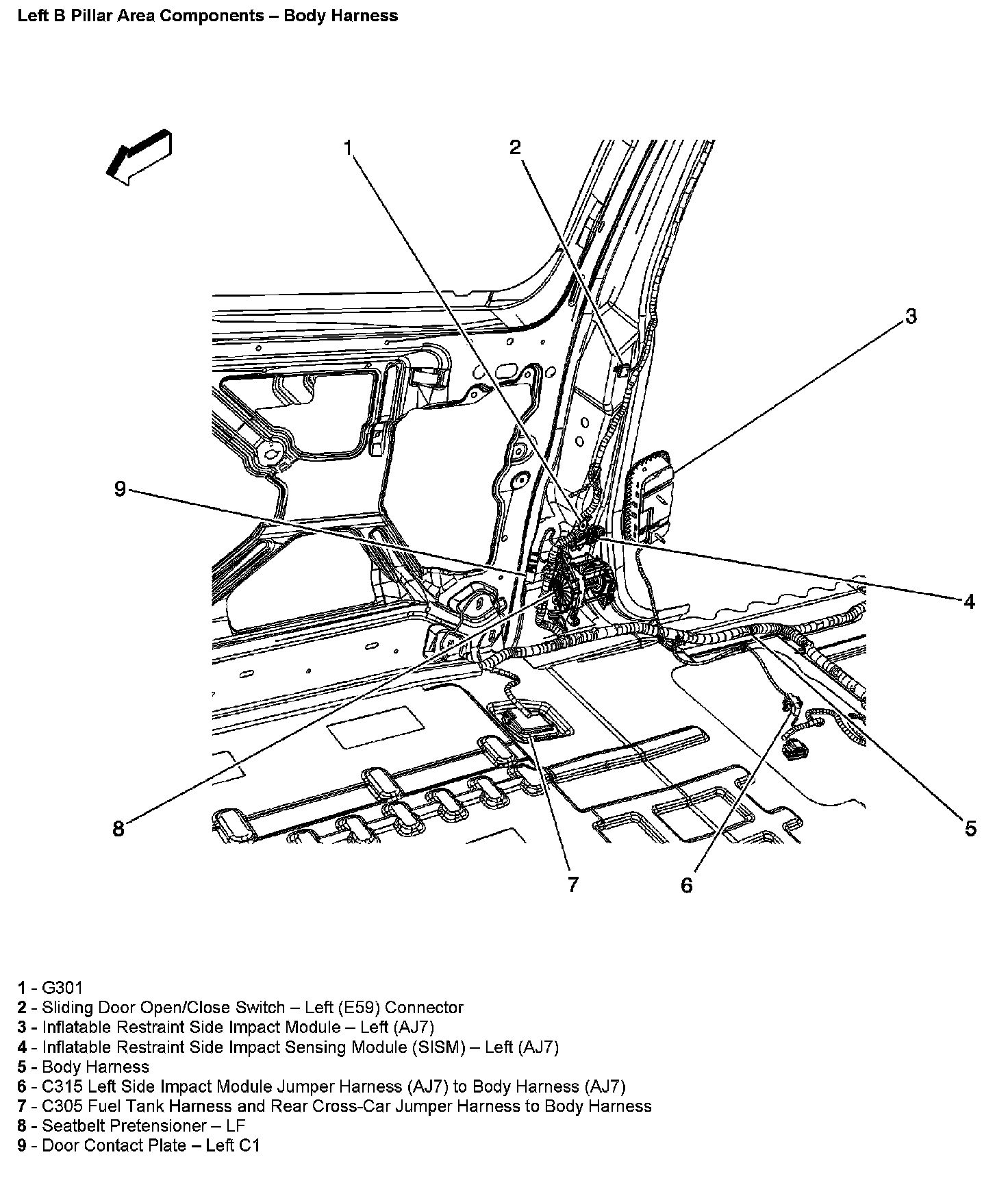 Left B Pillar Area Components - Body Harness: