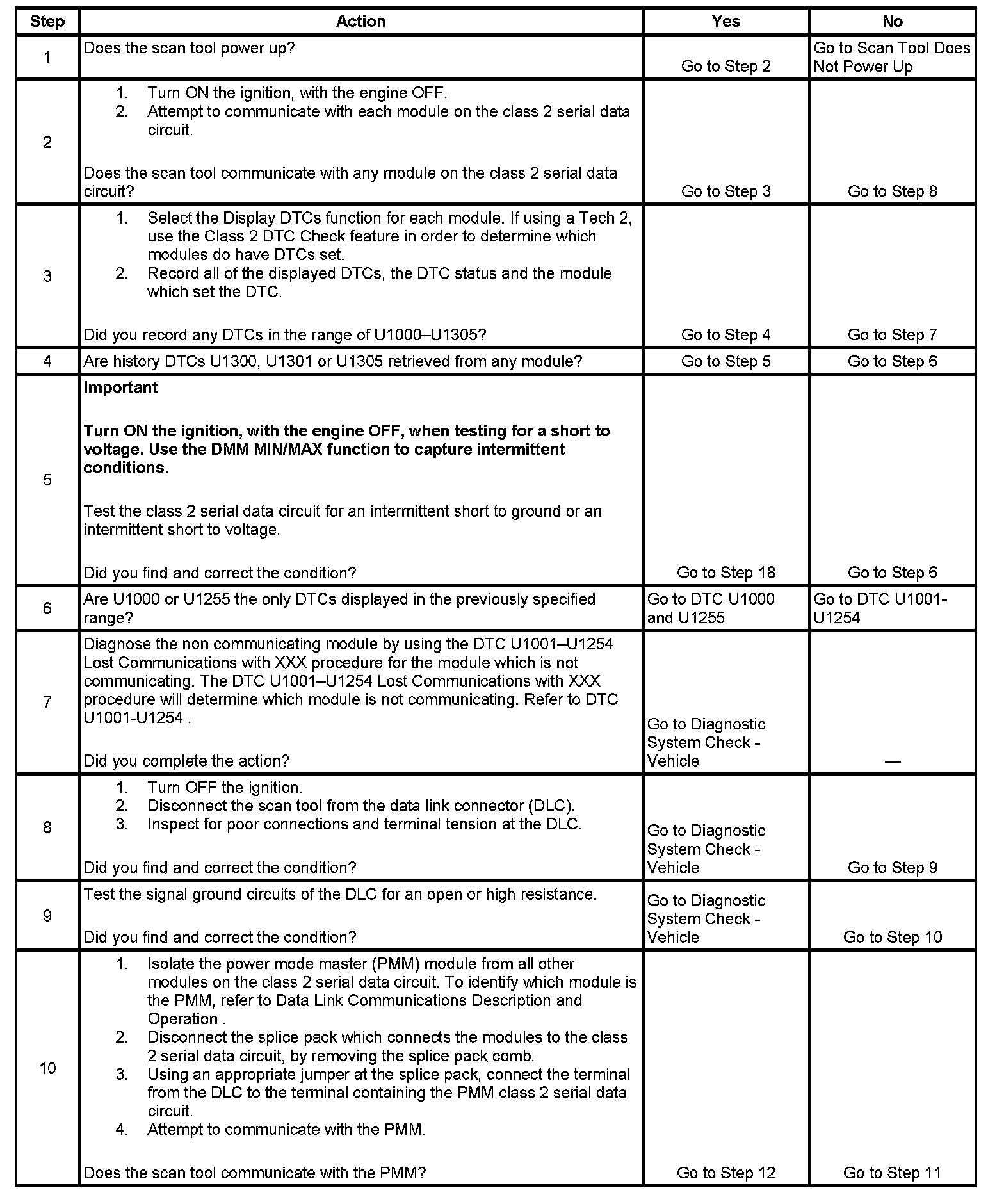 2. A partial loss of communication in the class 2 serial data circuit uses a different procedure than a total loss of communication of the class 2 serial data circuit.