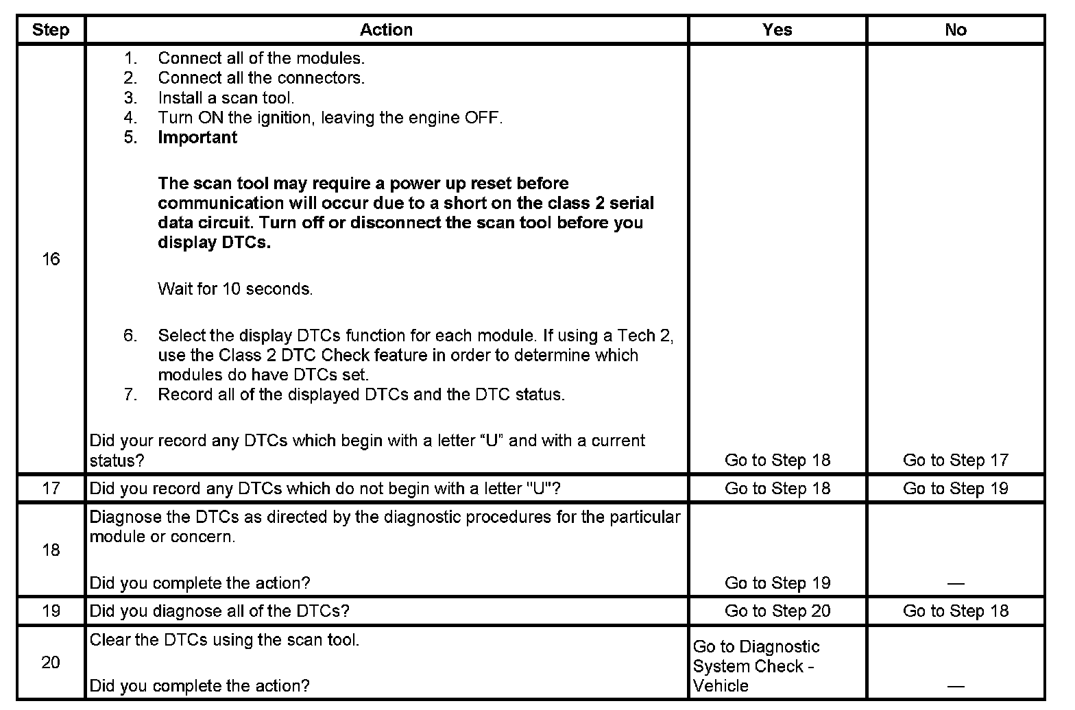 17. If there are no current DTCs that begin with the letter "U", the communication concern has been repaired.