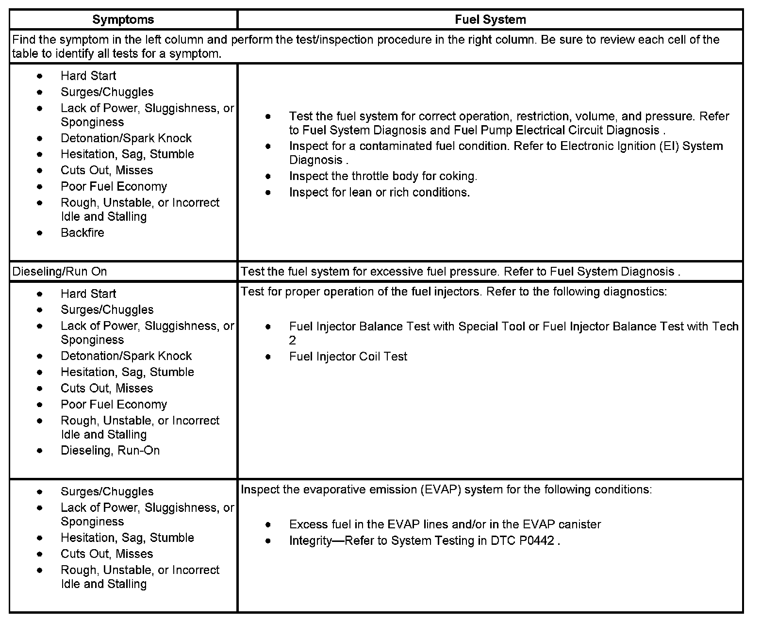 - Symptoms - Fuel System