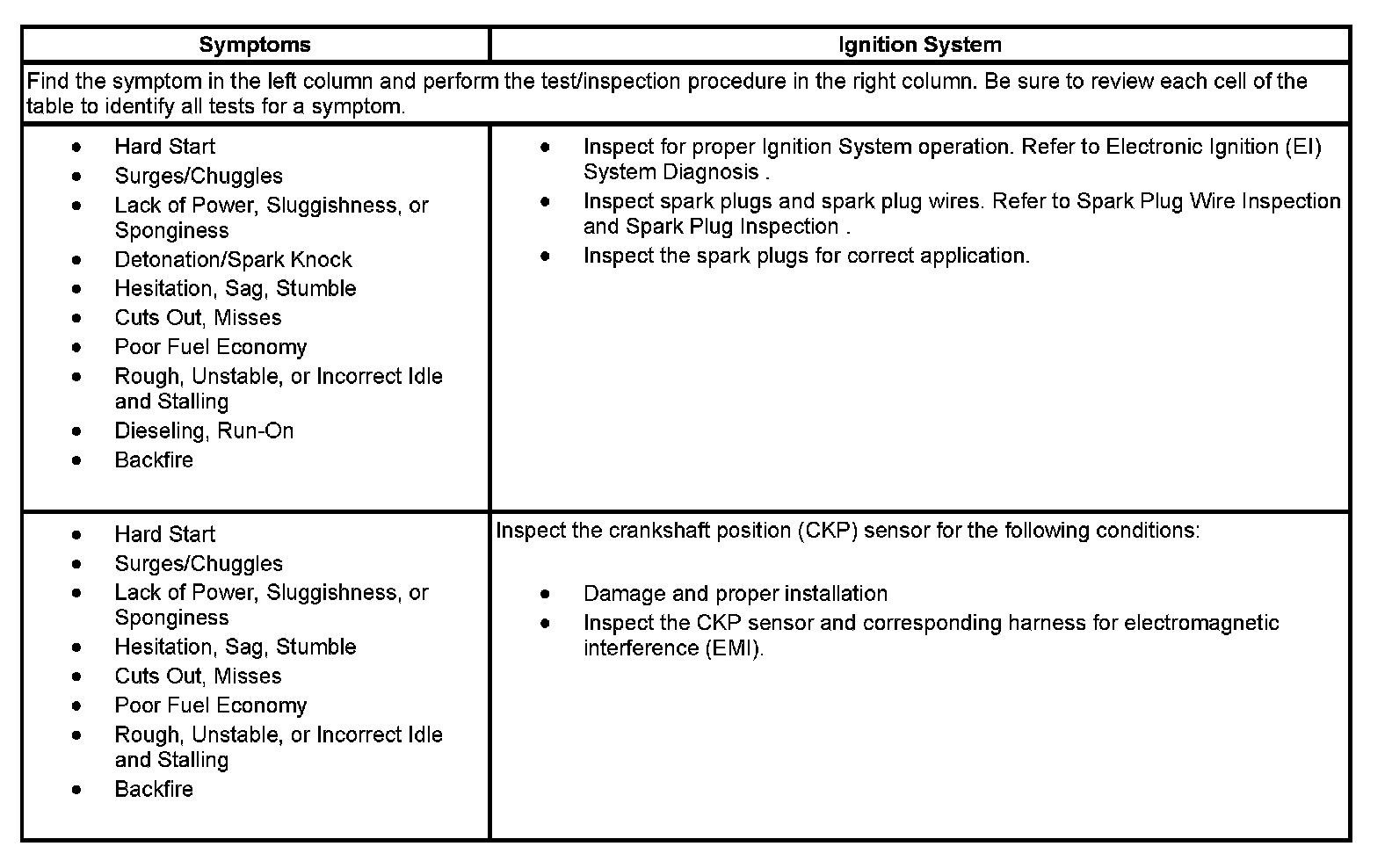 Symptoms - Ignition System: