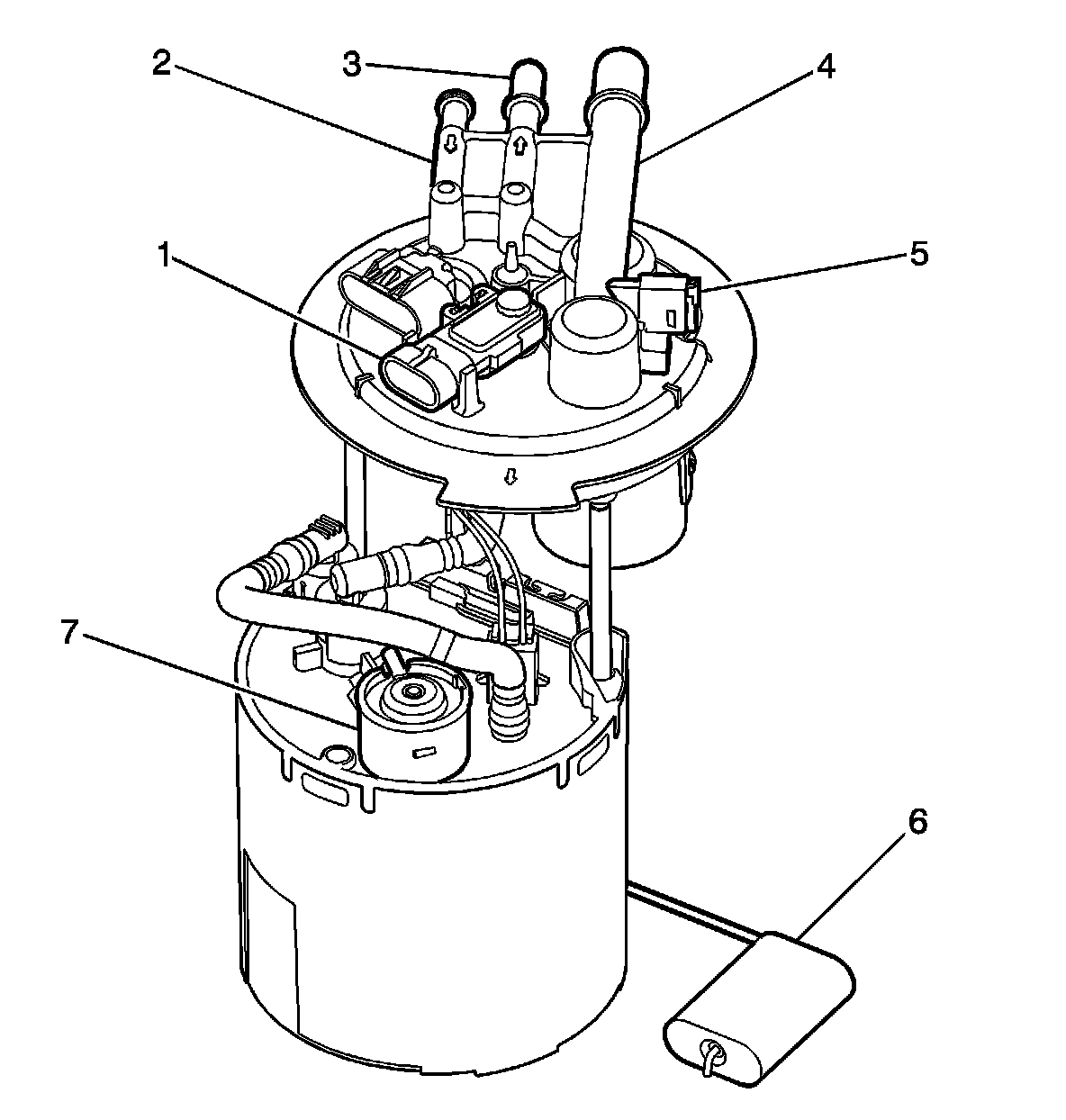 The fuel sender assembly consists of the following major components: