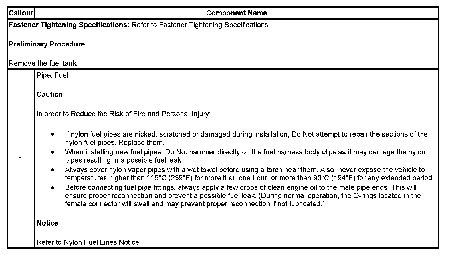 Fuel Hose/Pipes Replacement - Chassis
