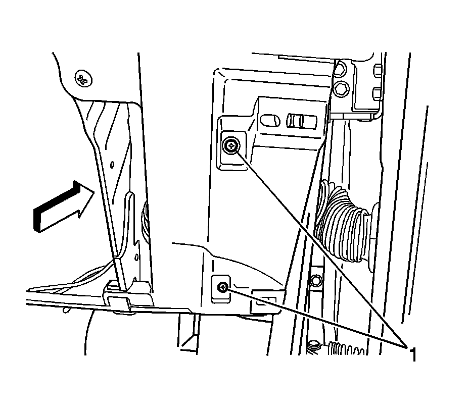 4. Remove the 2 forward screws (1) securing the I/P accessory wiring junction block assembly to the I/P carrier.