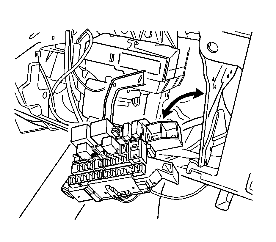 6. Lower the I/P electrical center bracket and swing the junction block into the stowage compartment area.