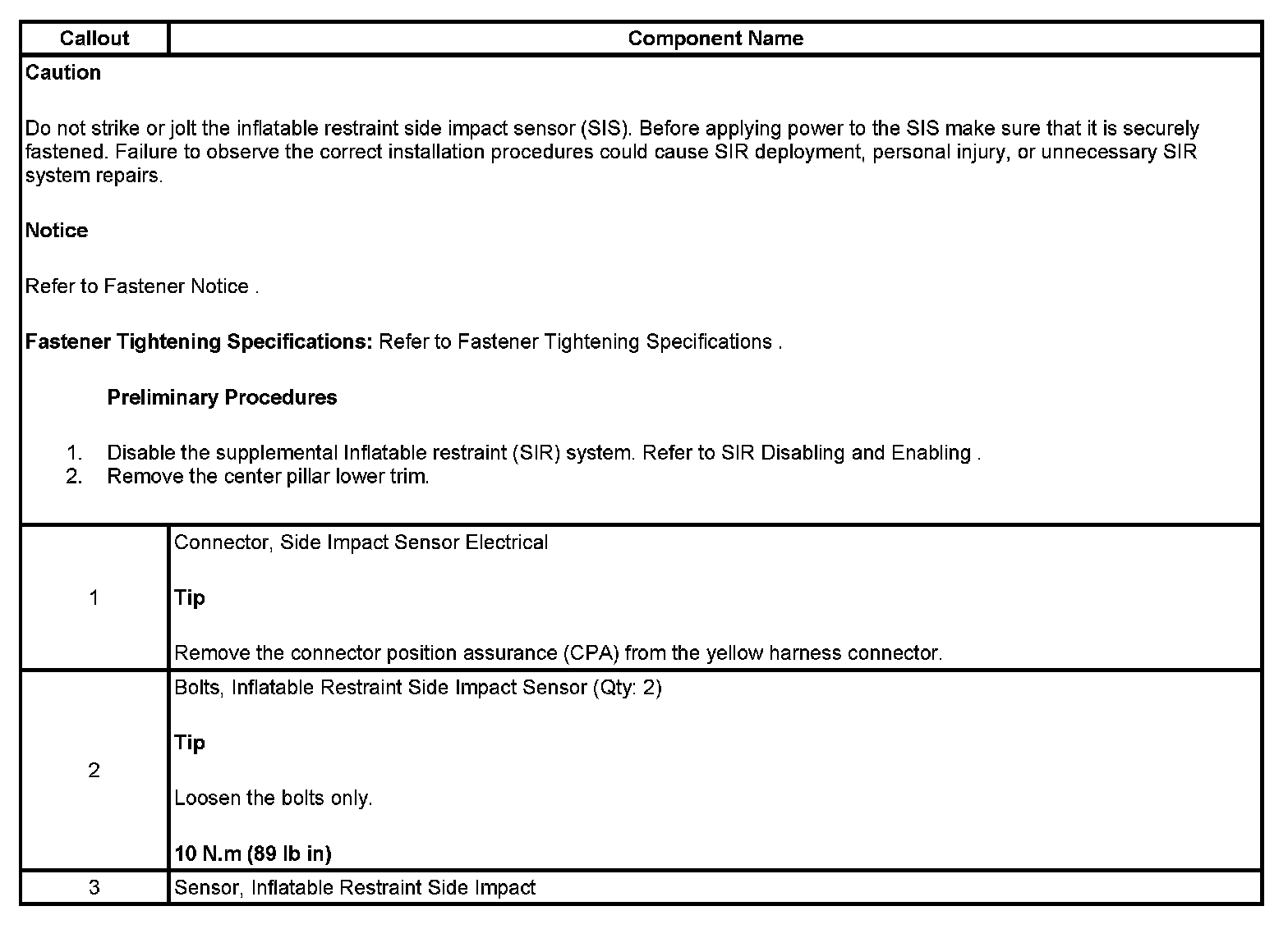 Inflatable Restraint Side Impact Sensor Replacement
