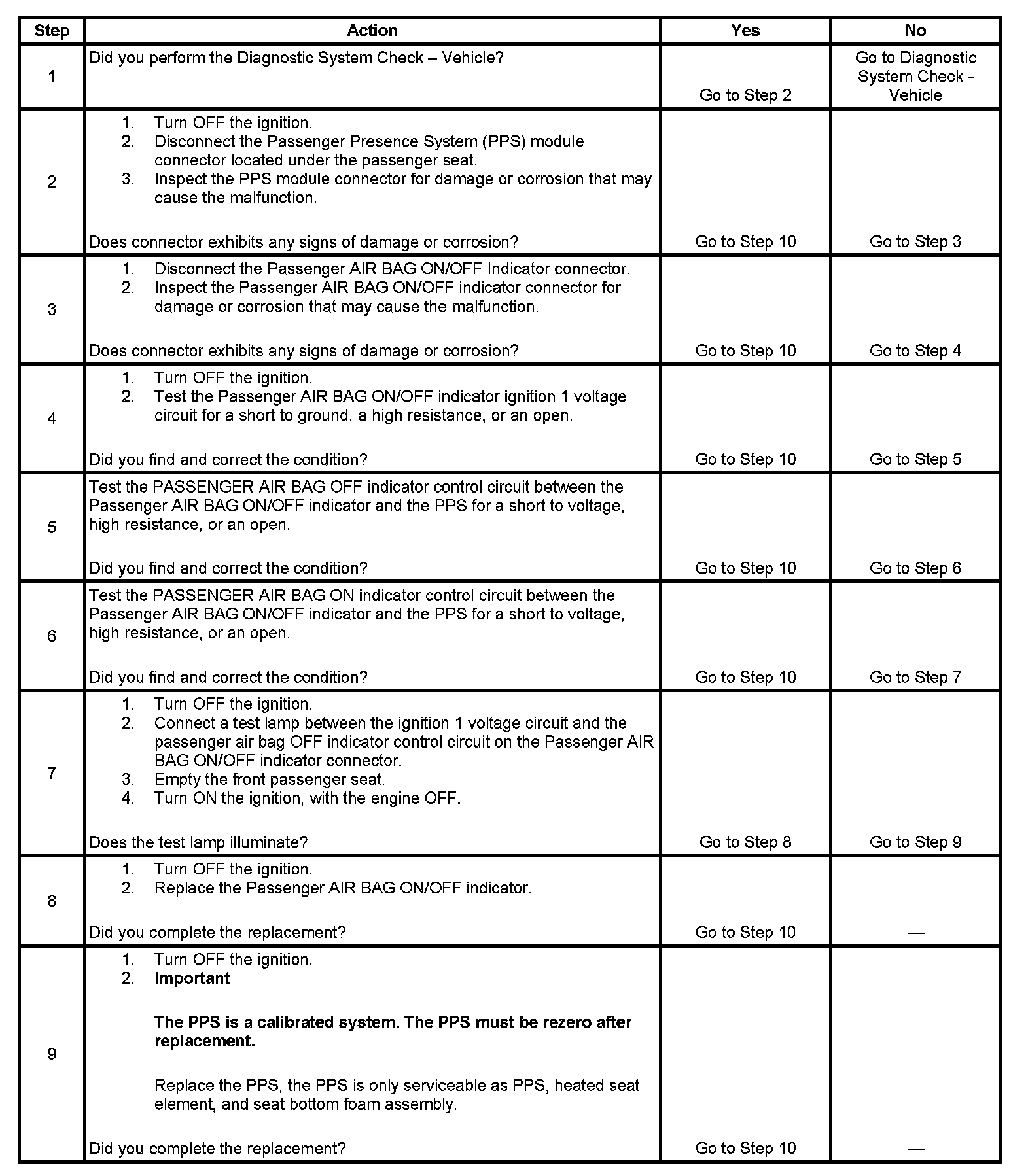 - An open or high resistance in the passenger air bag OFF indicator control circuit