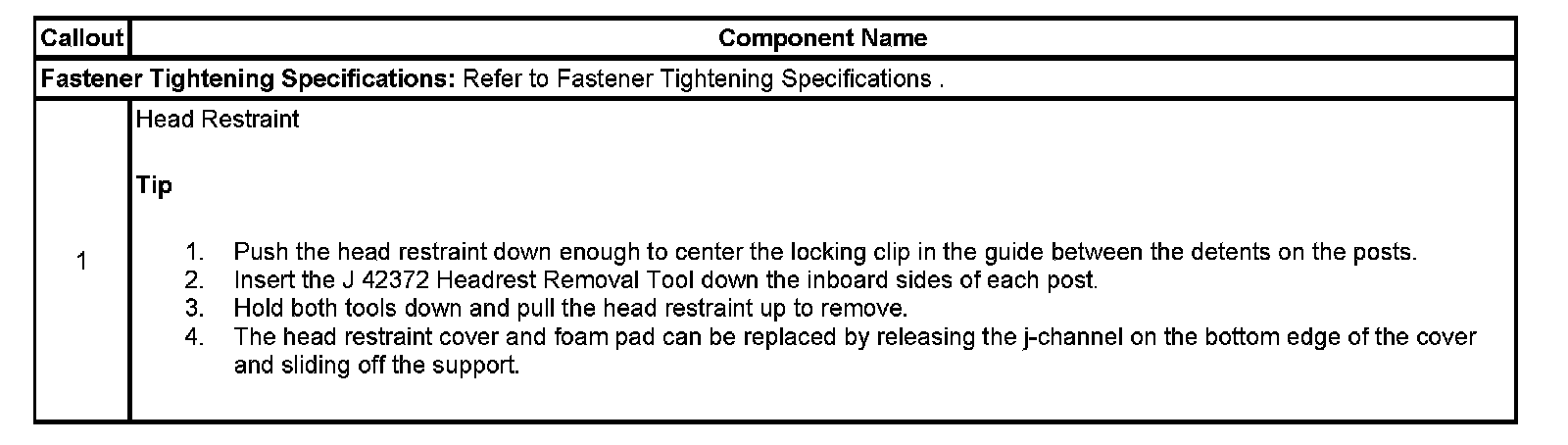 HEAD RESTRAINT REPLACEMENT - REAR SEAT (BUCKET)