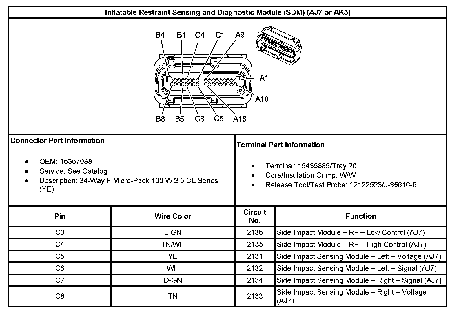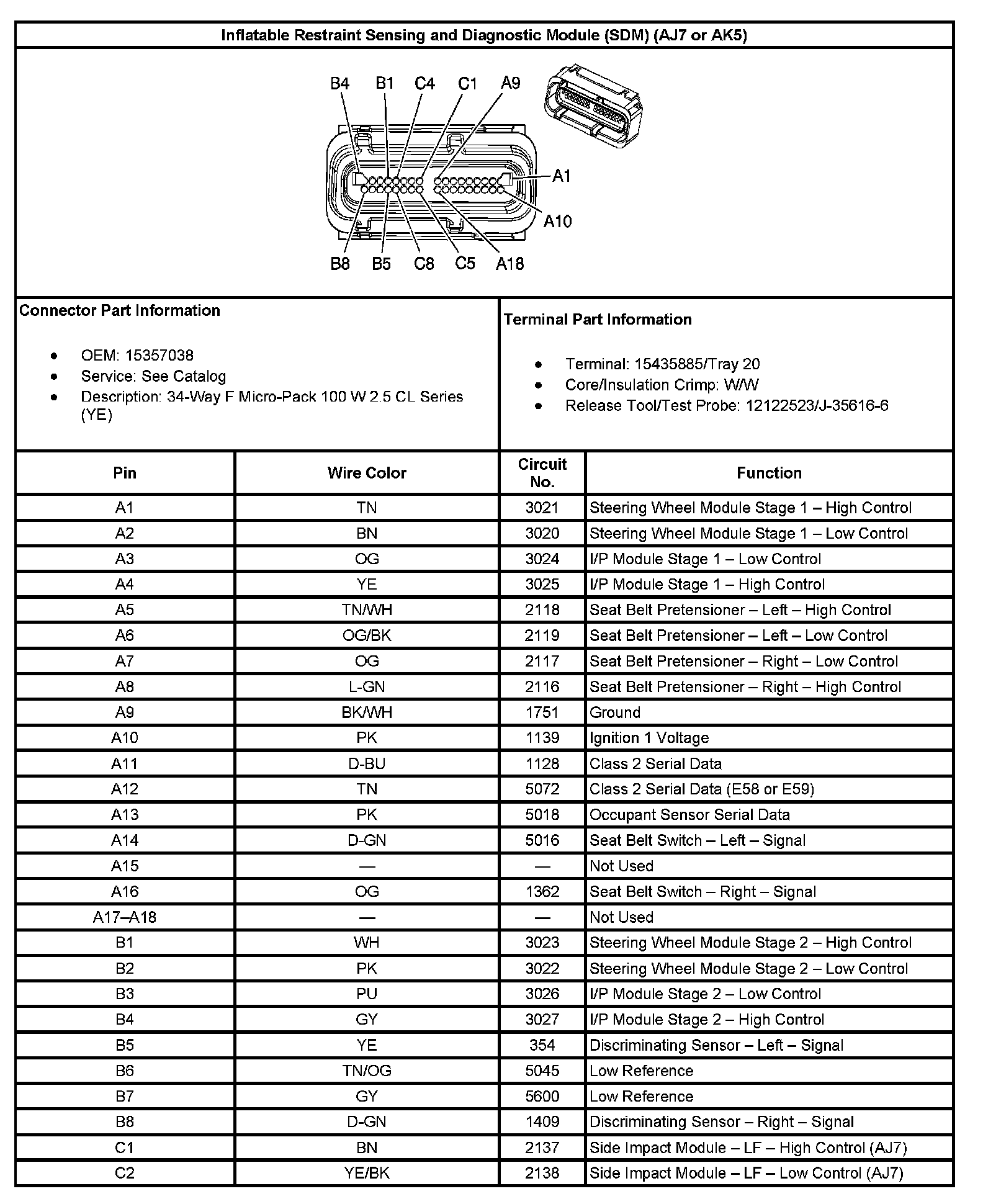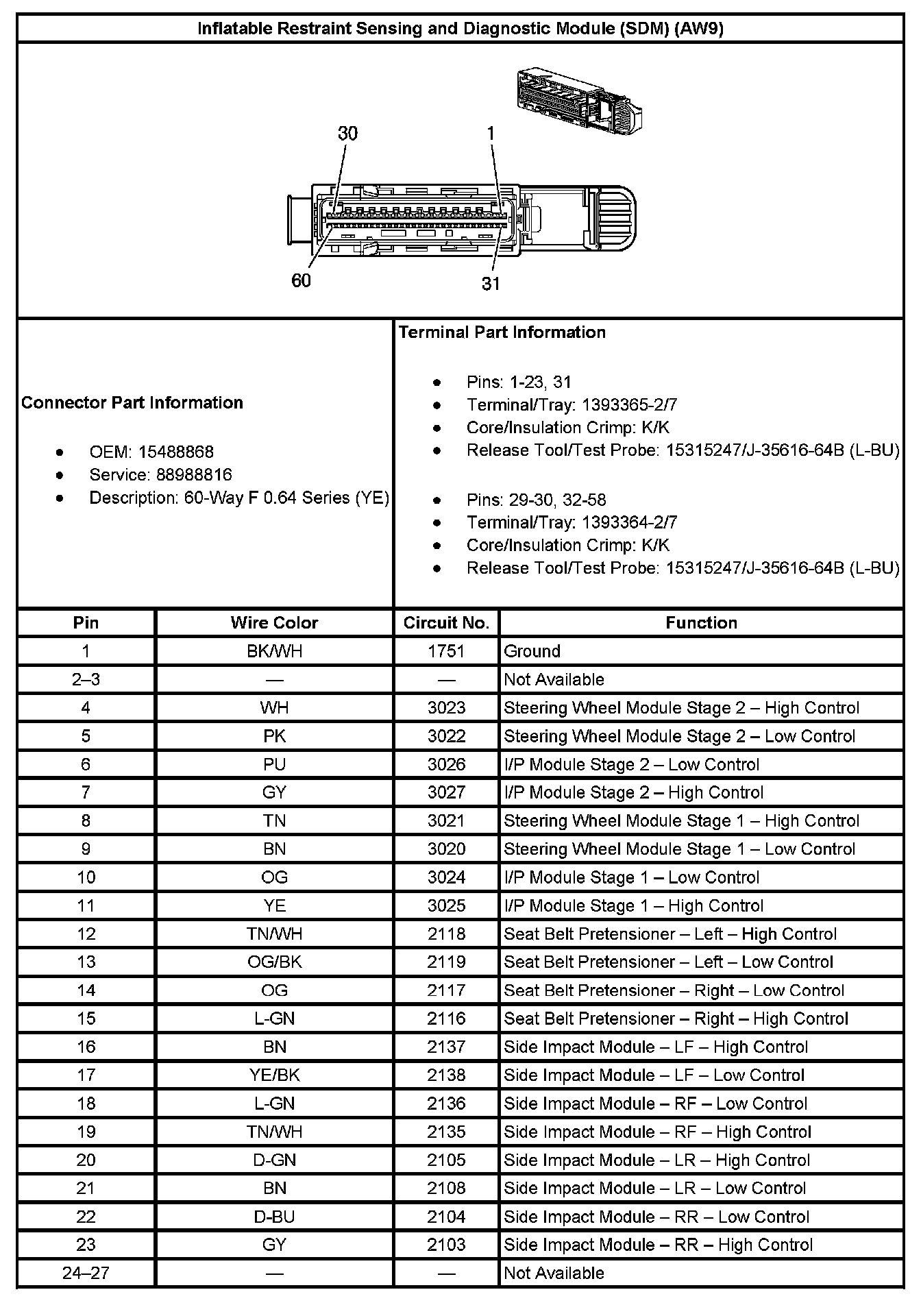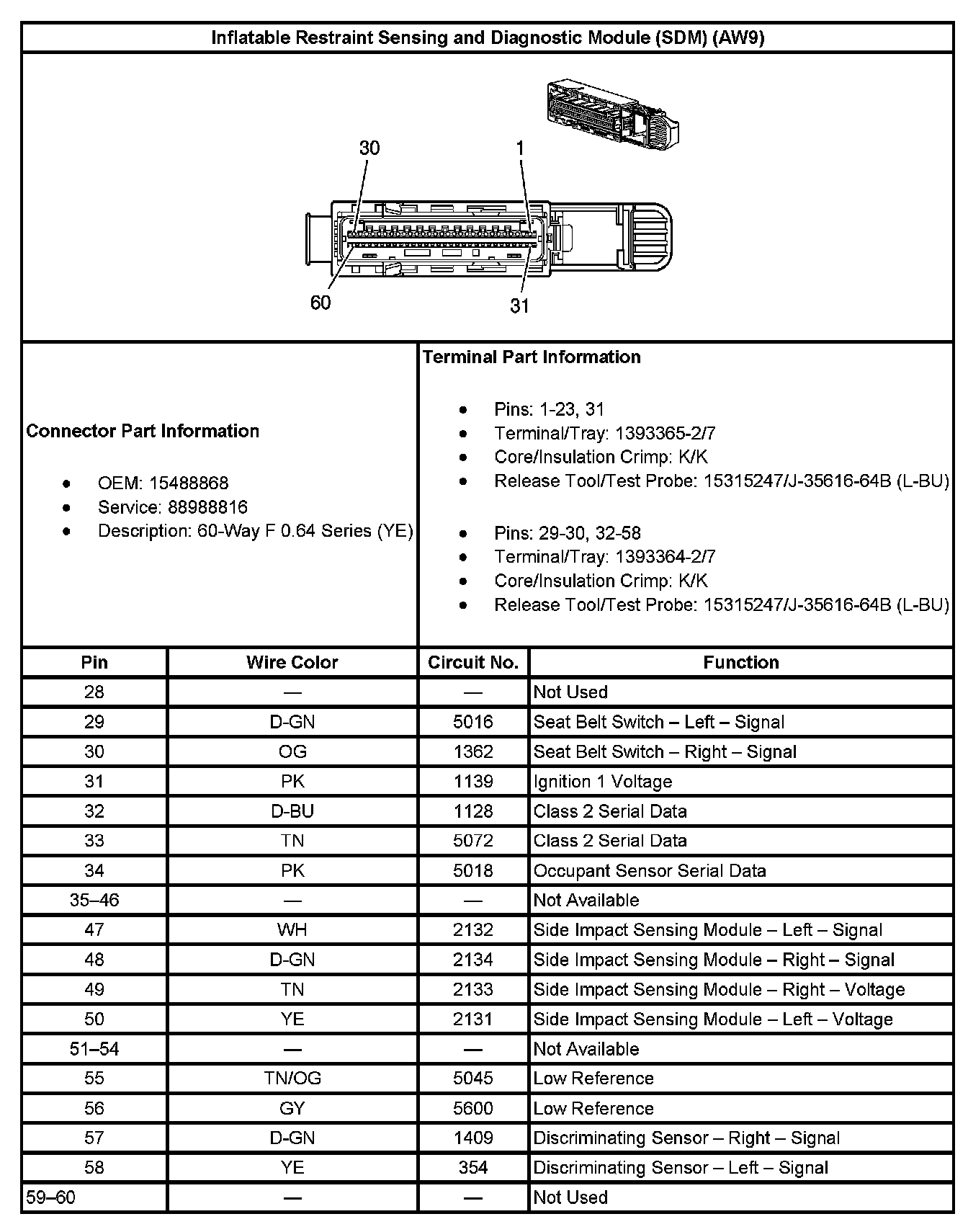 Inflatable Restraint Sensing And Diagnostic Module (SDM) (With RPO Code AJ7 Or AK5):