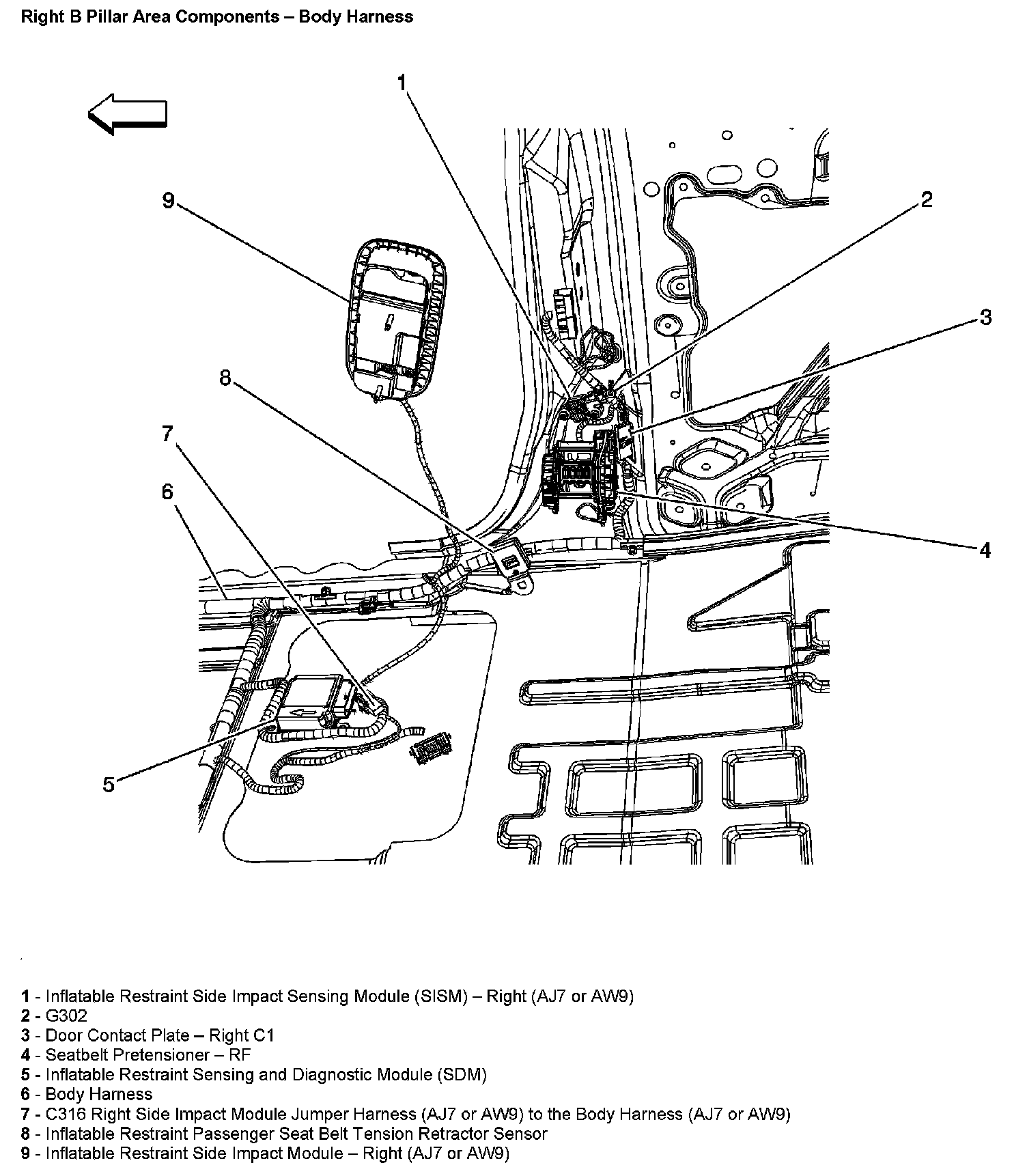 Right B Pillar Area Components - Body Harness:
