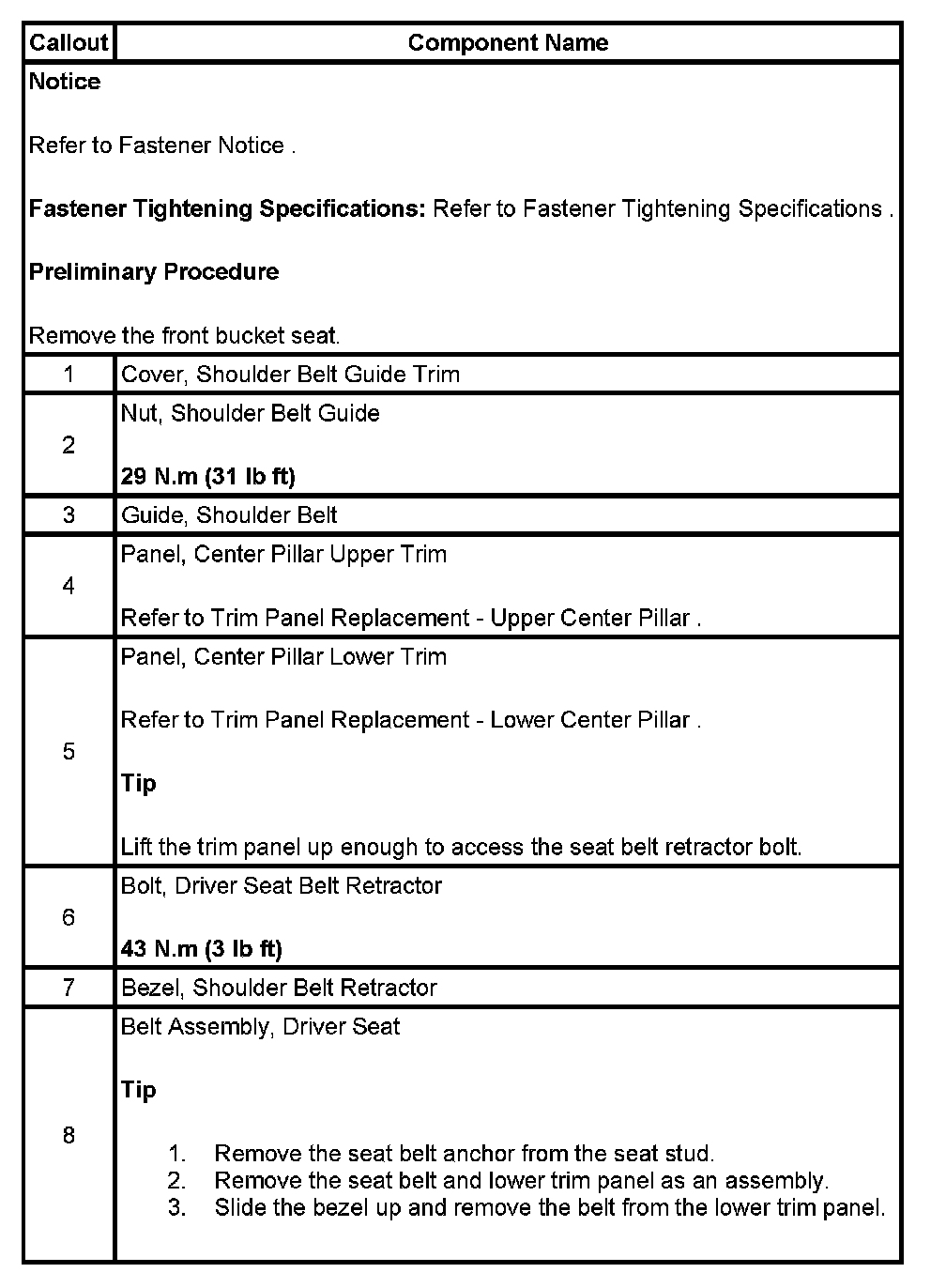 Seat Belt Retractor Replacement - Left Front
