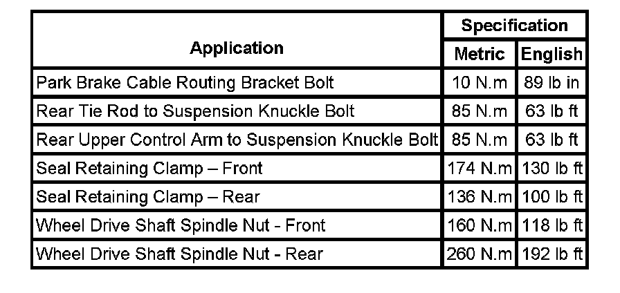 Fastener Tightening Specifications: