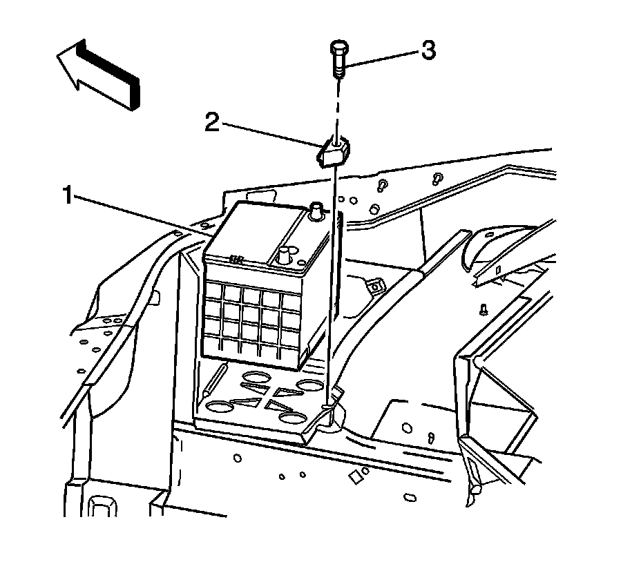 8. Remove the battery hold down retainer bolt (3).