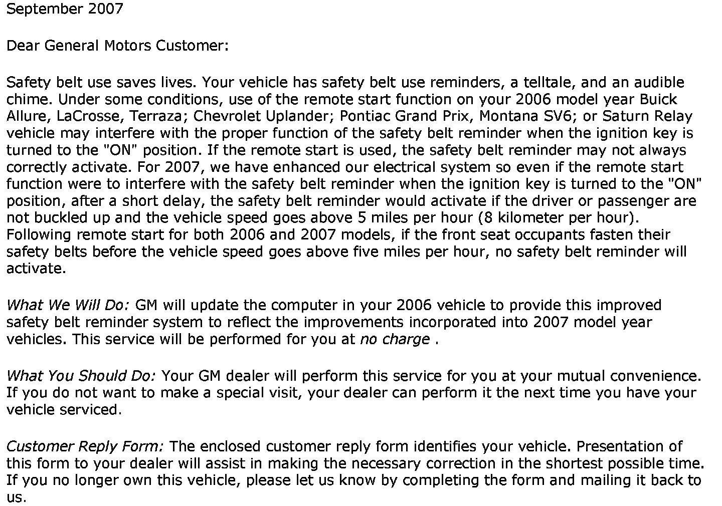 Campaign - Rem. Start Interferes/Seat Belt Buzzer
