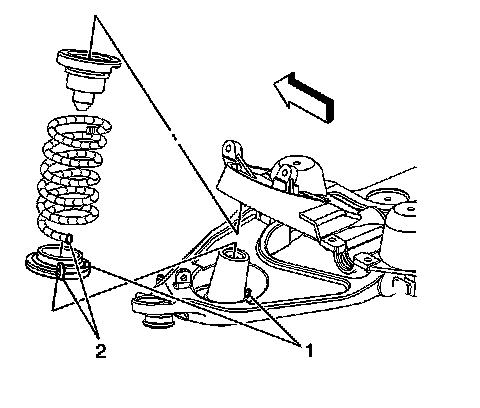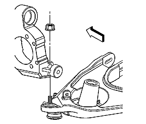 3. Install the cam bolt (1) and the cam washer (2) to the lower control arm.