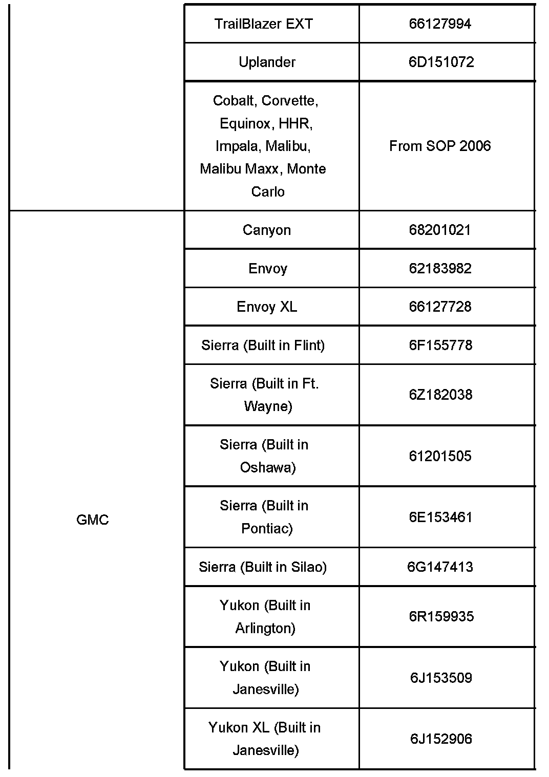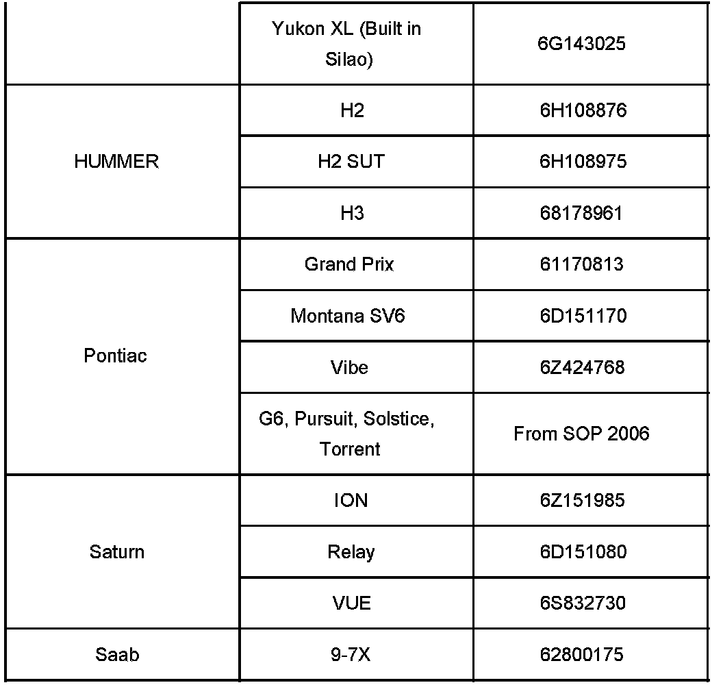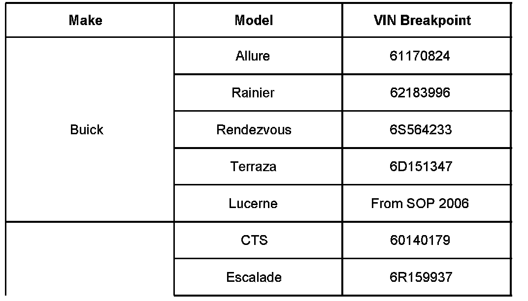 Built After and Including the VIN Breakpoints Listed Below (2006 MY Only)