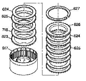 Replace the second clutch (5) steel plates (625) (24204104), (6) fiber plates (624) (24205361), and (2) oil sealing rings (613) (24209498). Refer to GM unit repair service manual for the year and model of the vehicle being serviced for the 2nd clutch service procedure.