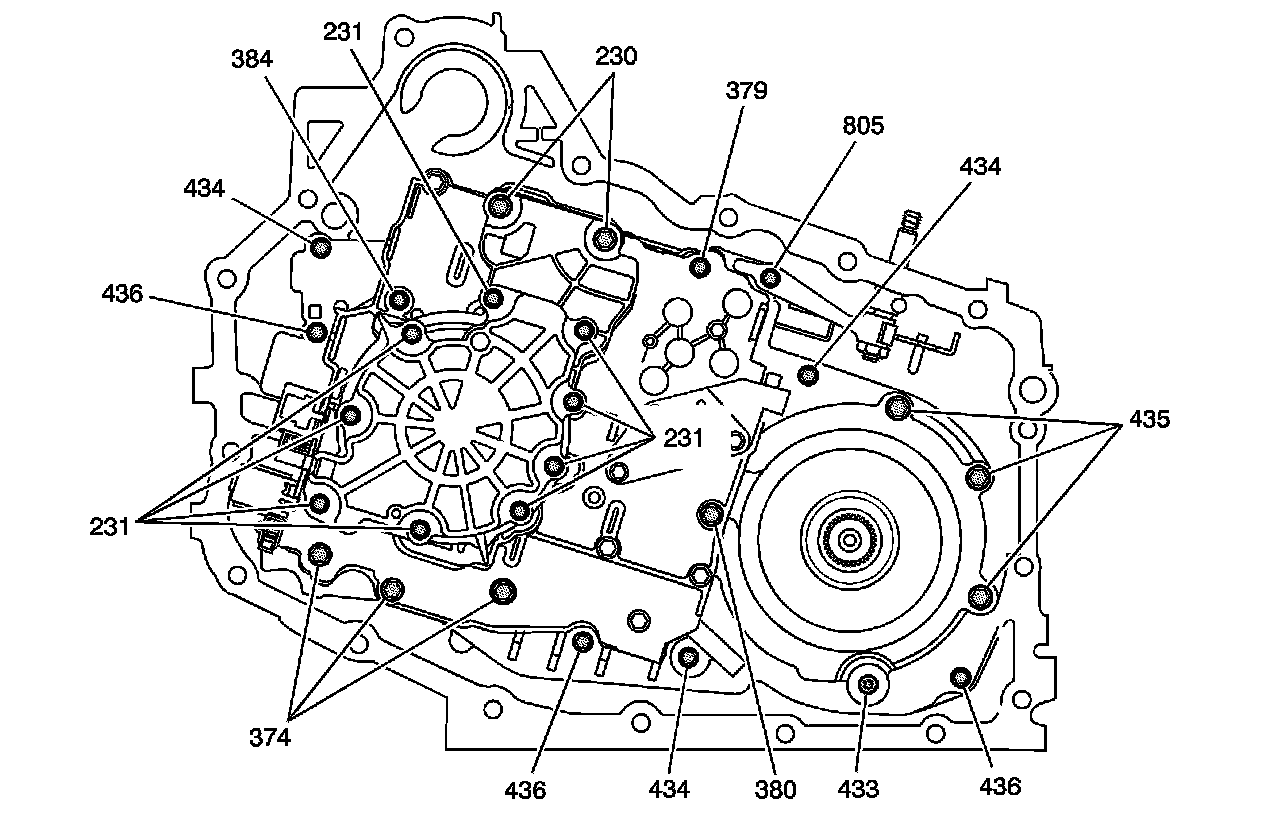 This service kit does not contain the gaskets and/or seals necessary to service the Case Cover and Control Valve Body, if they are disassembled from each other. Please review the graphic above for Pump Body-to-Case (230), Pump Cover-to-Case (231), Control Valve Body-to-Case (377), Manual Shift Detent Assembly-to-Case (805), and Case Cover-to-Case (433, 434, 435, 436, 374, 379, 380, 384) bolt locations.
