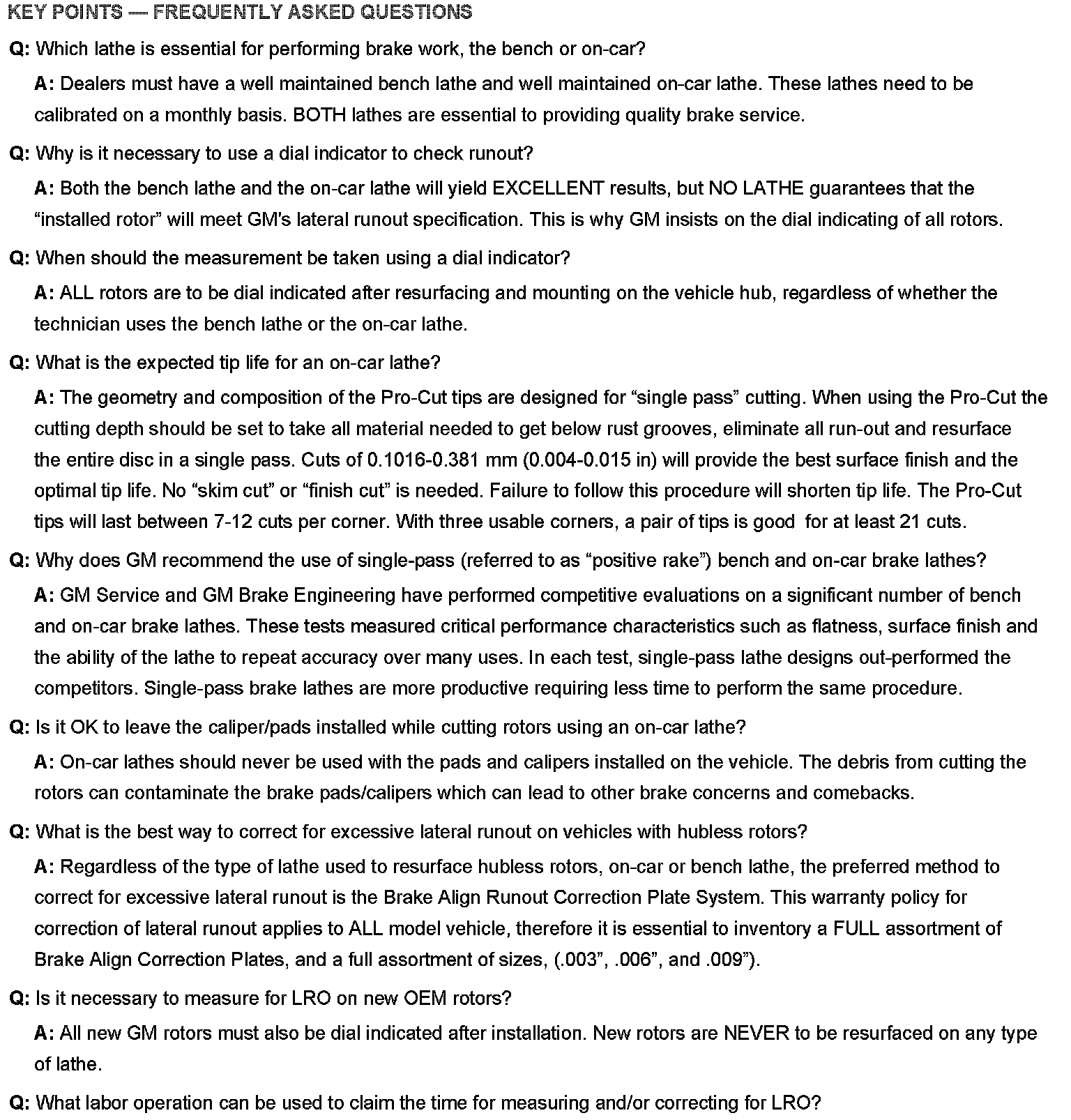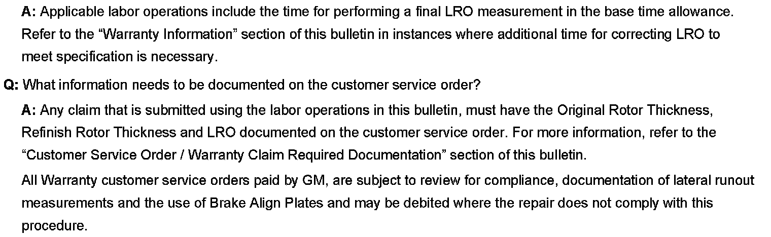 Disc Brake System - Warranty Service and Procedures