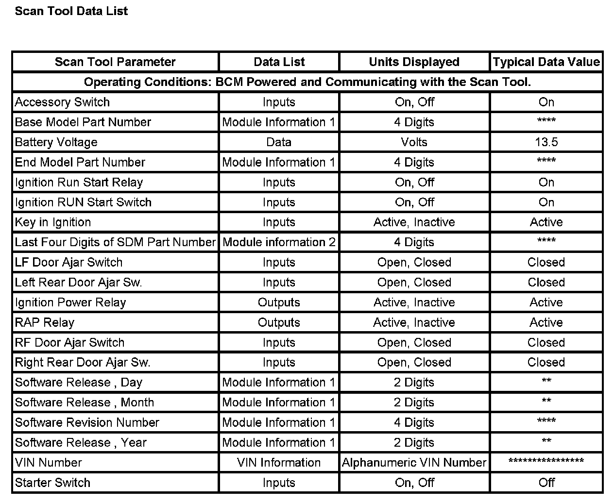 Scan Tool Data List: