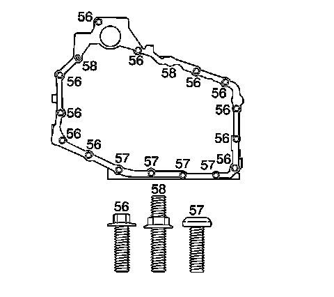 Tighten the bolts (56-58) to 25 Nm (18 ft. lbs.).