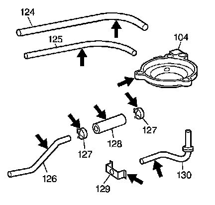 3. Inspect the servo and lube oil pipe components (124-130) and the 2-1 manual band servo cover (104) for the following conditions: