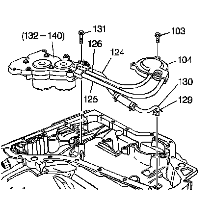 3. Install the accumulator (132-140) and 2-1 manual band servo cover assembly (104) into the case.
