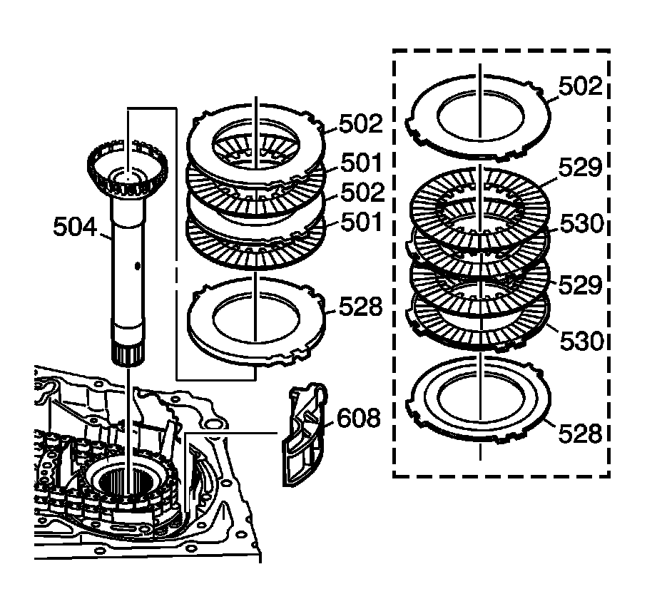 1. Remove the fourth clutch fiber and steel plates (501, 502) or (529, 530),some models.