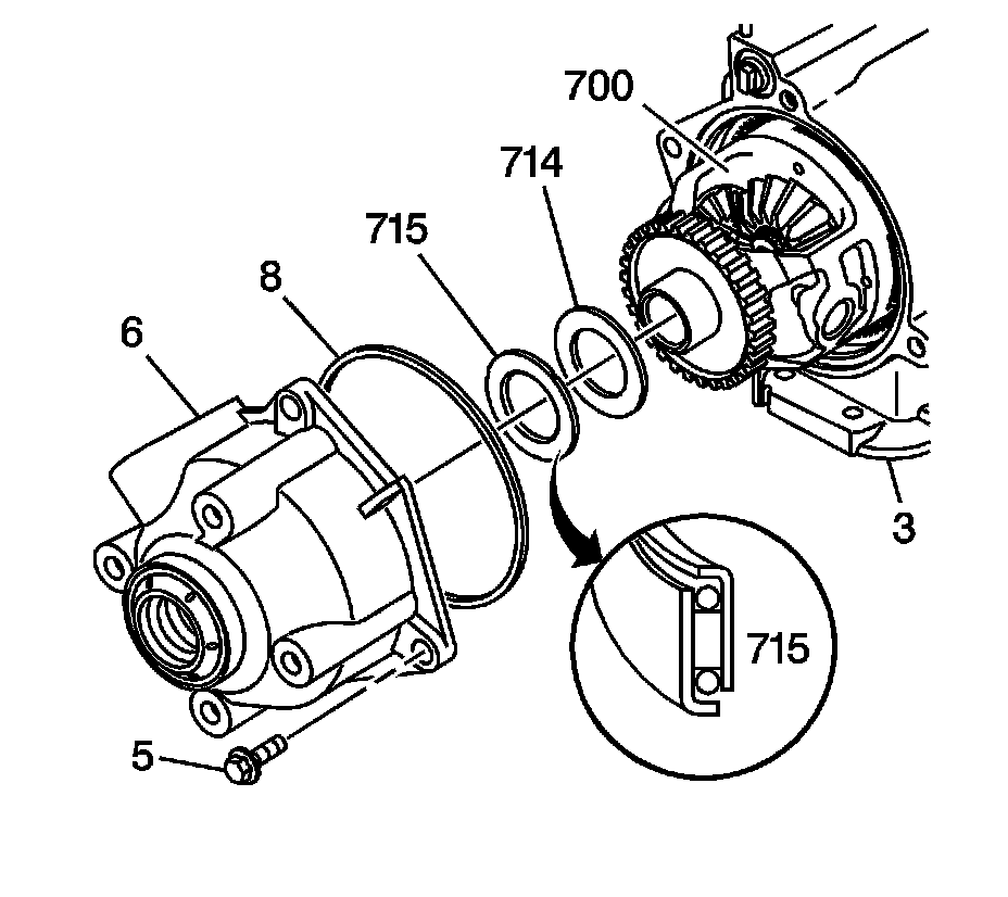 3. Remove the differential carrier thrust washer (715).