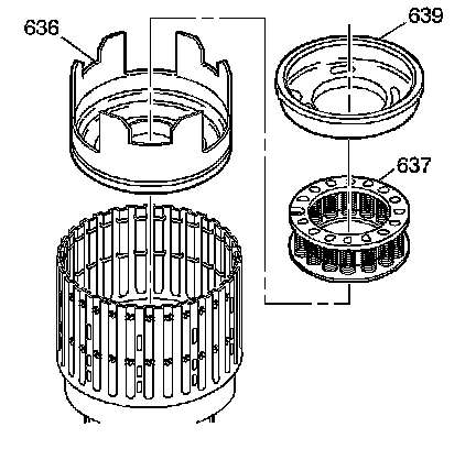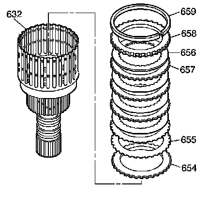 3. Remove all of the input clutch plate assemblies (656, 657).
