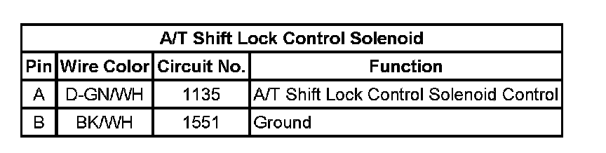 A/T Shift Lock Control Solenoid: