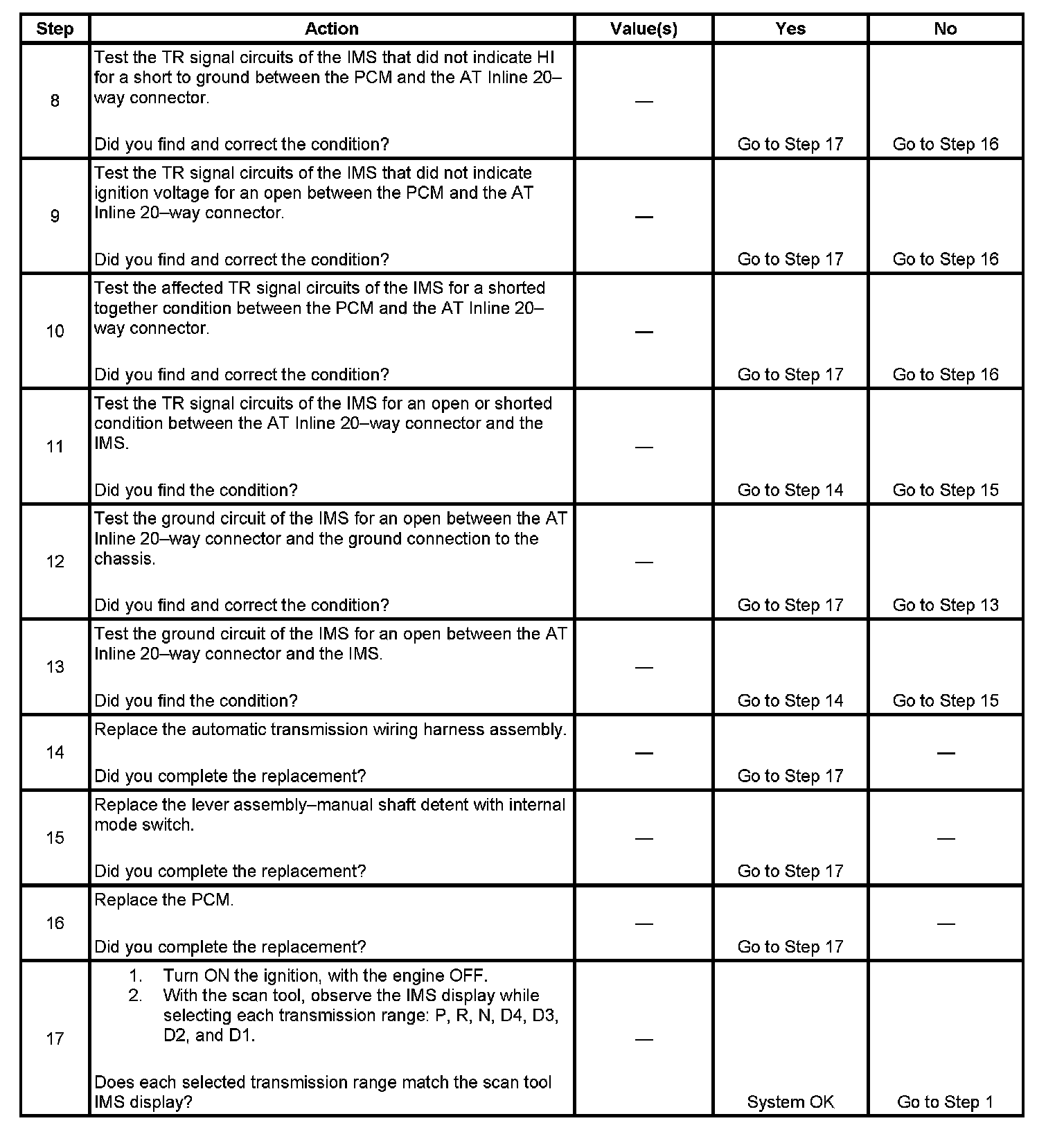 11. This step tests the internal transmission harness. If no fault is found in the harness, the fault will be in the switch.
