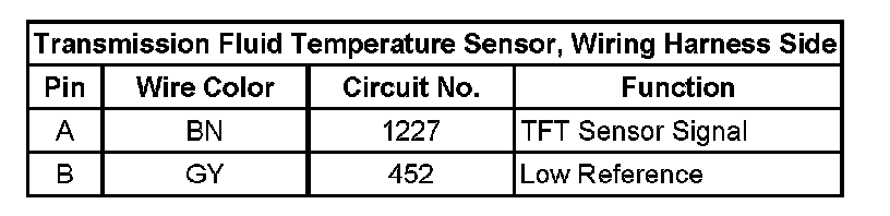Transmission Fluid Temperature Sensor, Wiring Harness Side: