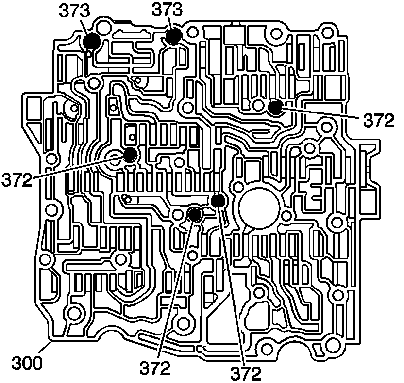 3. Install the ball check valves (372, 373) into the valve body. Use the J 36850 to retain the ball check valves in their proper locations.
