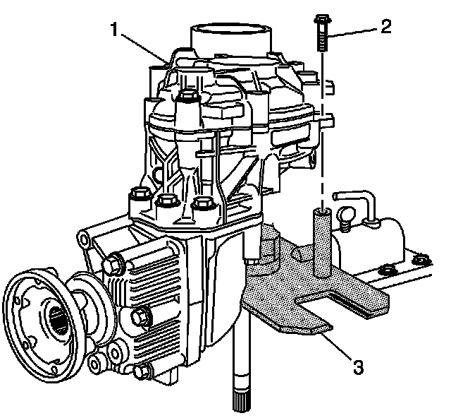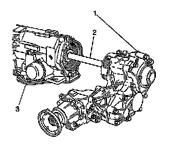 Remove the transfer case (1) with the output shaft (2) from the transaxle (3).