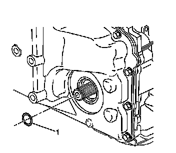 12. Remove and discard the left output shaft retaining ring (1).