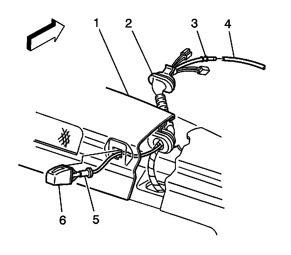 2. Position the rear washer nozzle (6) to the liftgate opening, pressing in until fully seated.