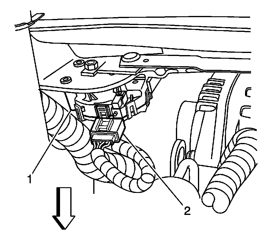 6. Disconnect the electrical connector (2) from the wiper motor (1).