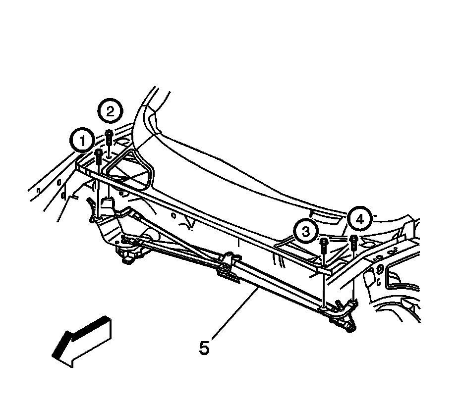 1. Position the wiper module (5) to the lower plenum in the driver side fender flange opening first.