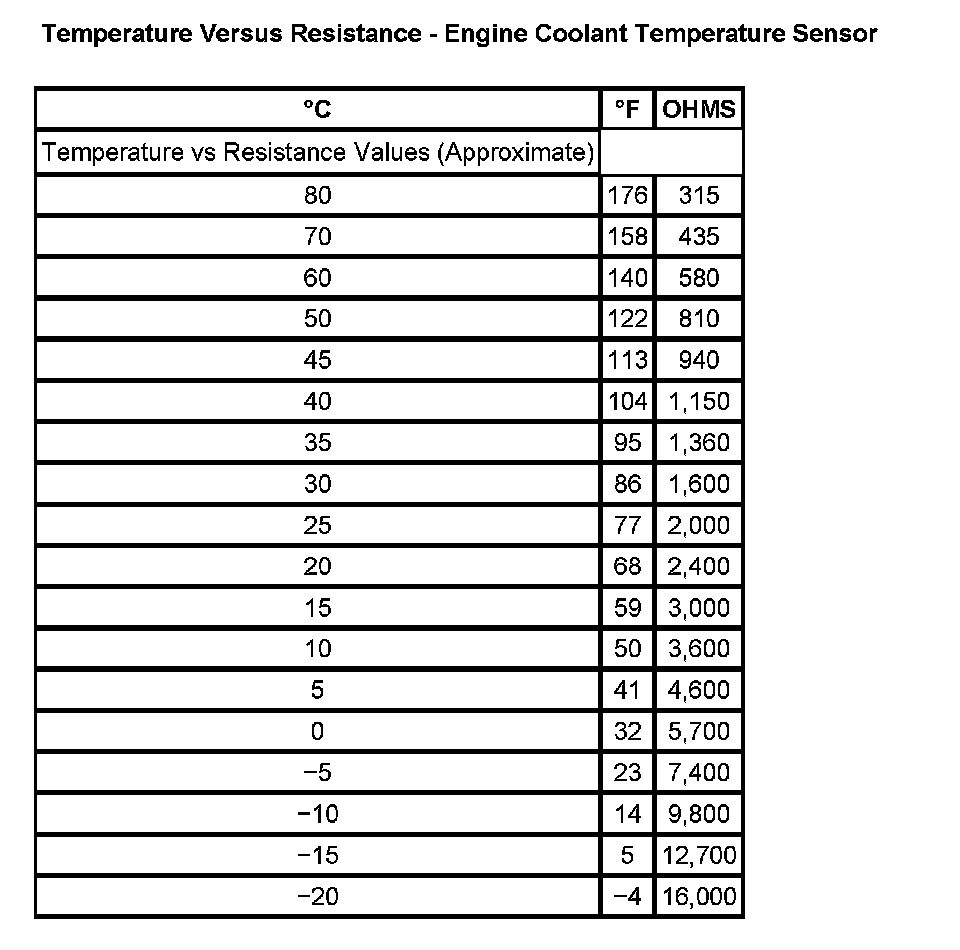 Temperature Versus Resistance - Engine Coolant Temperature Sensor: