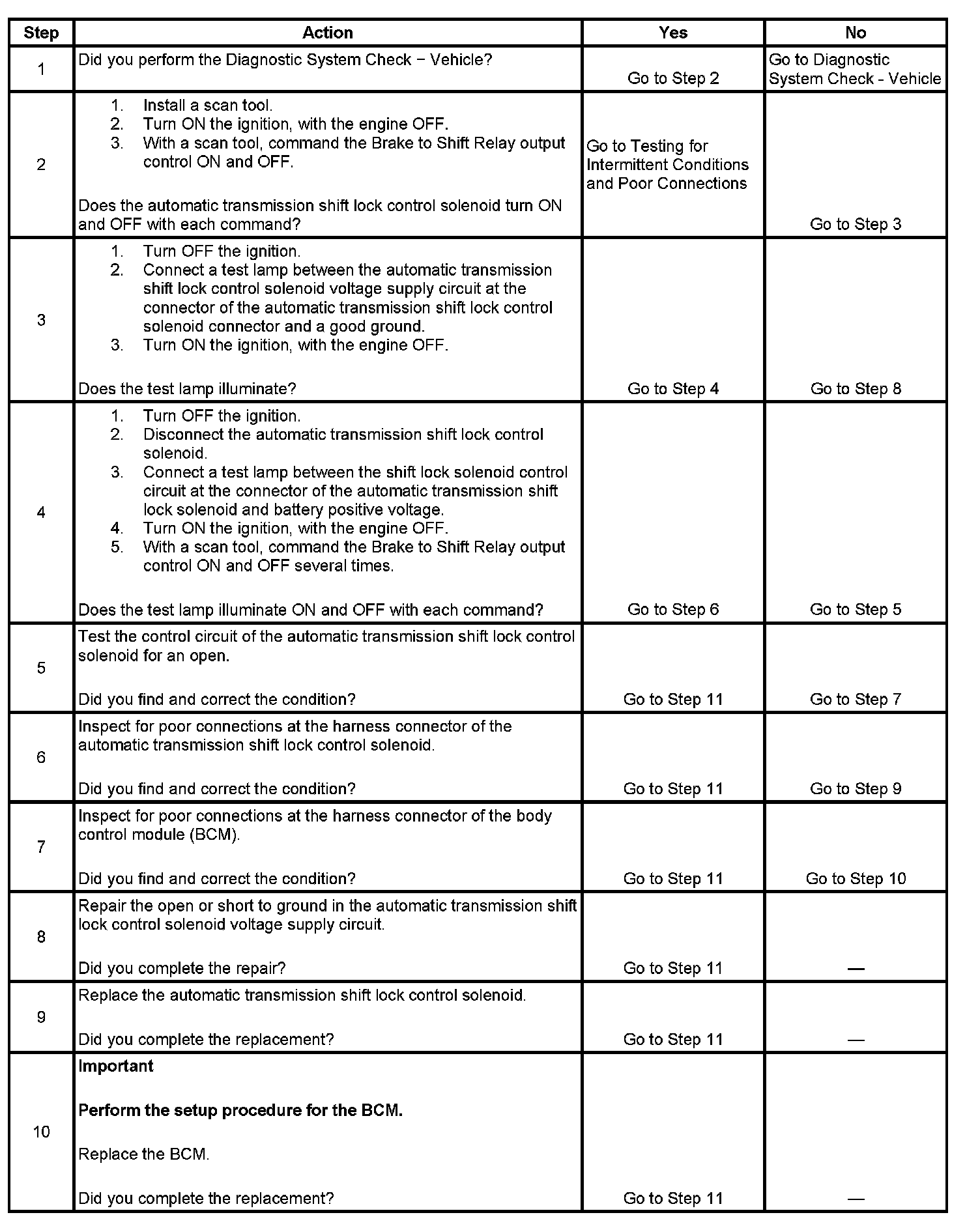 4. This step tests for ground at the control circuit of the automatic transmission shift lock control solenoid.