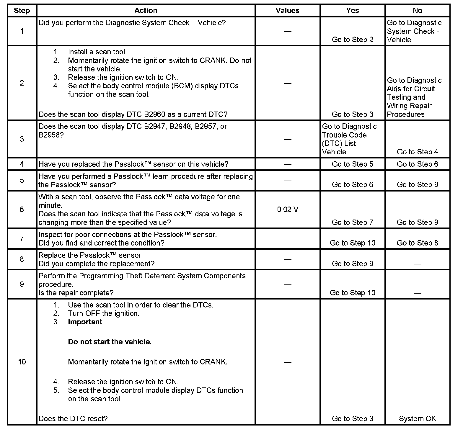 - Use a scan tool in order to inspect the Passlock(TM) data voltage and the Passlock(TM) code.