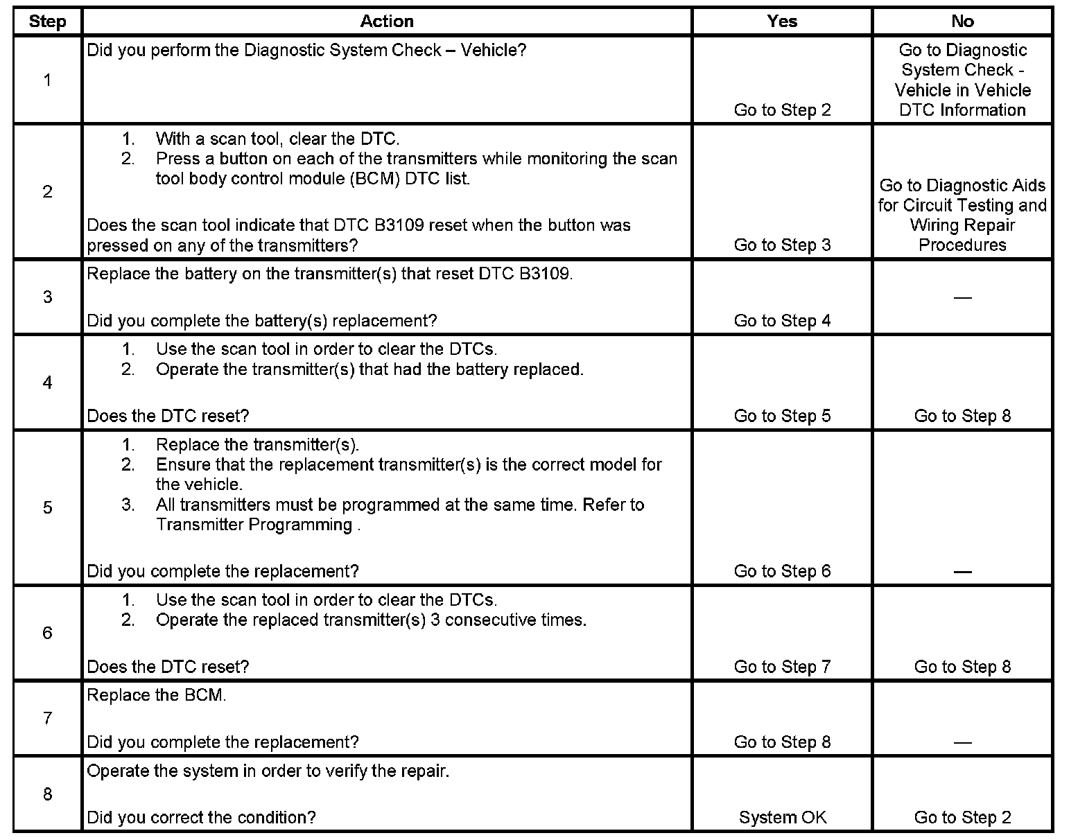 DTC B3109 Keyless Entry Transmitter Low Battery