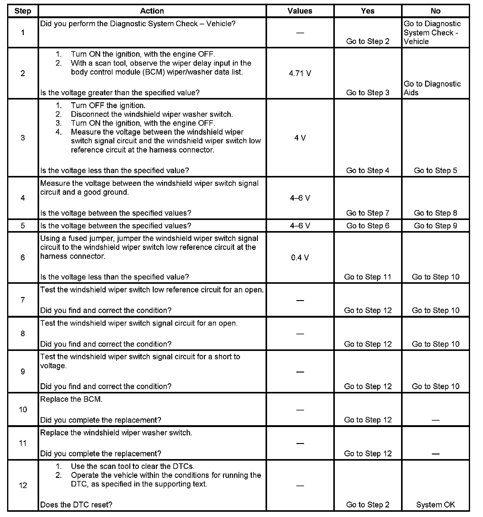 - The windshield wiper switch signal circuit is greater than 4.71 volts, open or shorted to voltage.