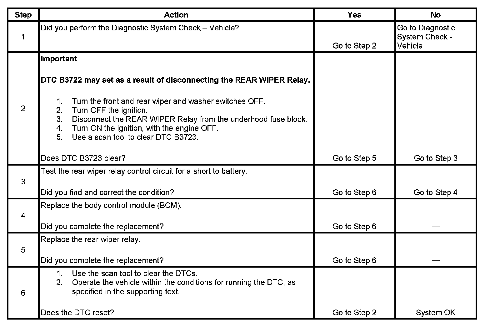 DTC B3723 Rear Wiper Relay Drive Circuit High