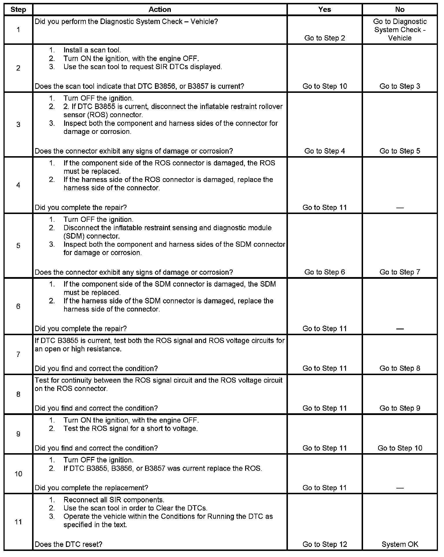 - DTC B3857 will set when the SDM has received an ID message from the ROS that does not match the ID stored in the SDM memory.