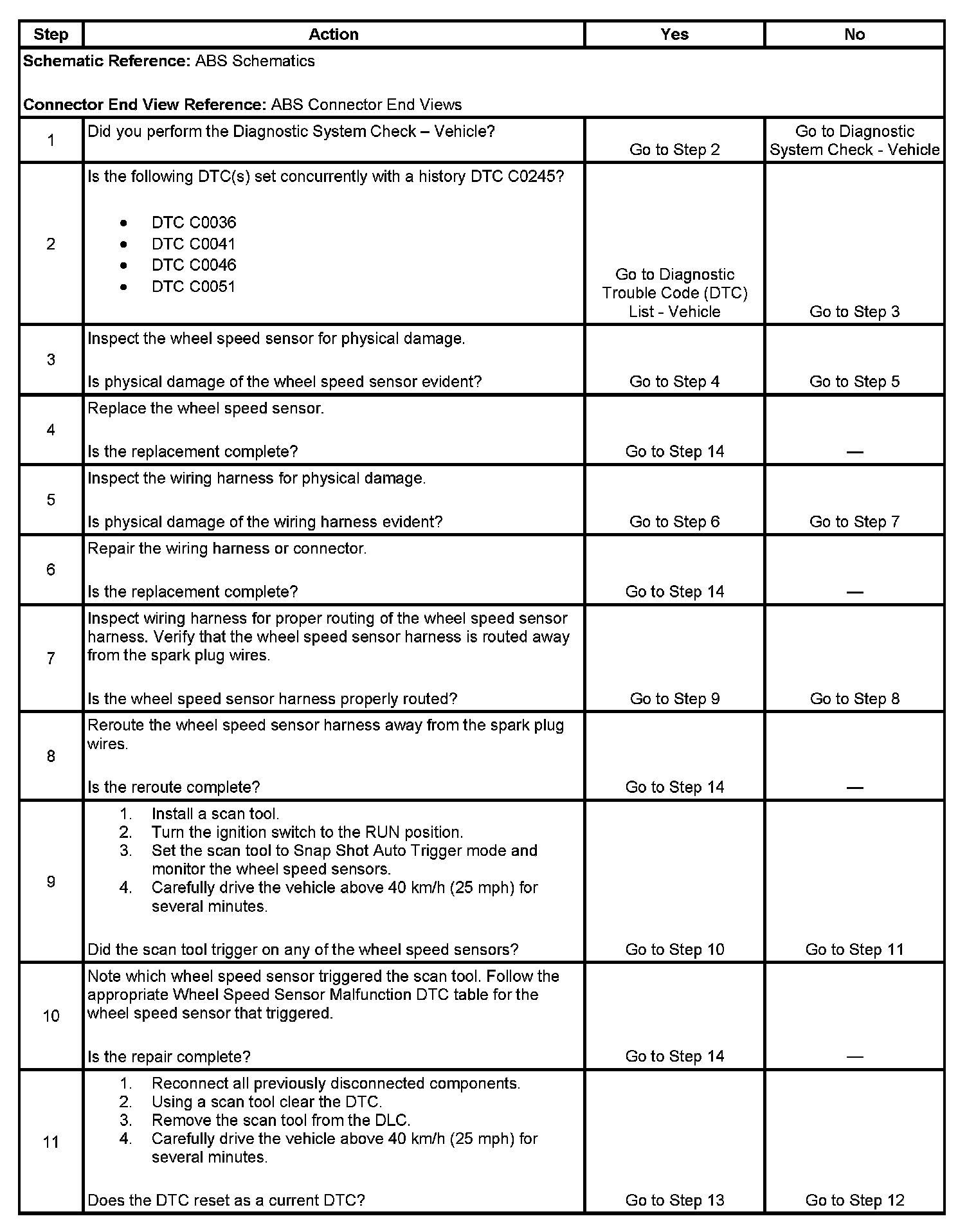 2. If DTC C0245 is a history code, this step checks if a specific Wheel Speed Circuit Malfunction DTC is set concurrently with DTC C0245.