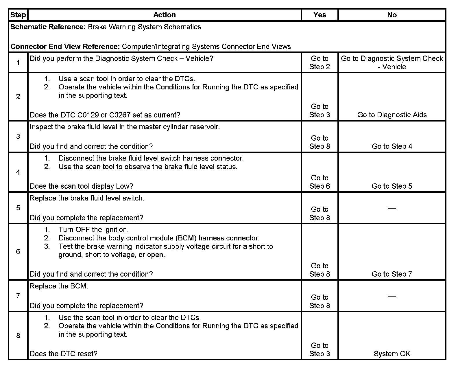 ^ The BCM detects an open in the brake fluid level signal circuit.