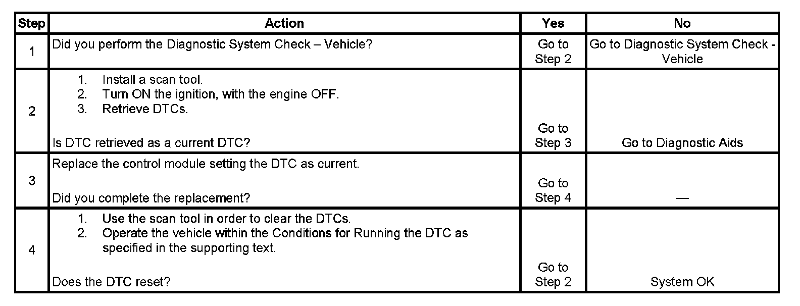 ^ If this DTC is retrieved as both a current and history DTC, replace the module.