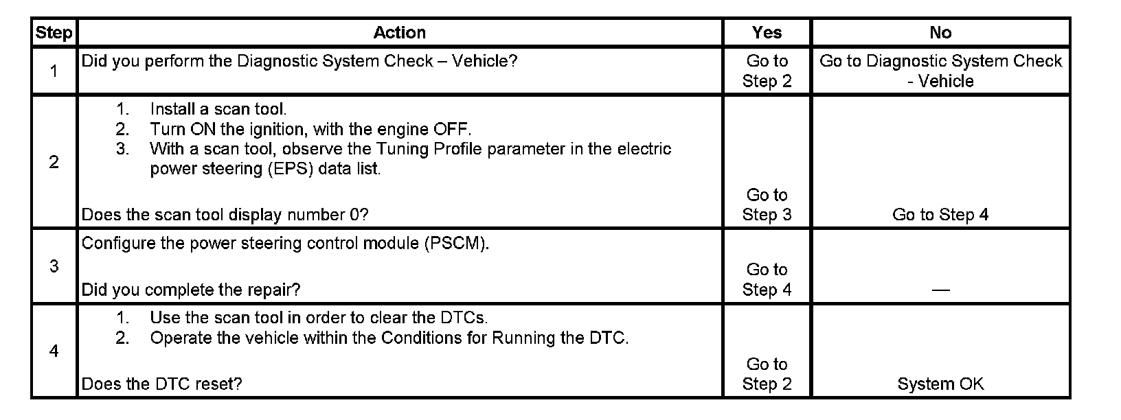 ^ A current DTC will clear after the PSCM has been configured with the proper tuning profile.